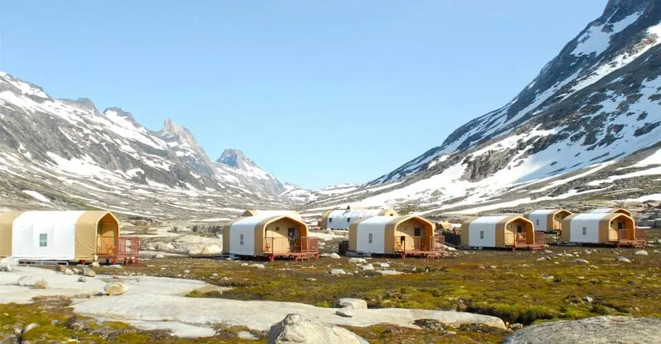 Natural Habitat’s Base Camp Greenland is an incredible expedition lodge that expertly blends creature comforts and ecological mindfulness. Nestled by the Sermilik Fjord and completely isolated, this beautiful lodge provides expansive views of glittering icebergs and access to this truly remote wonder of our world. Accommodating only 12 guests at a time, the experience is truly intimate with unique and personalized attention from expert guides.