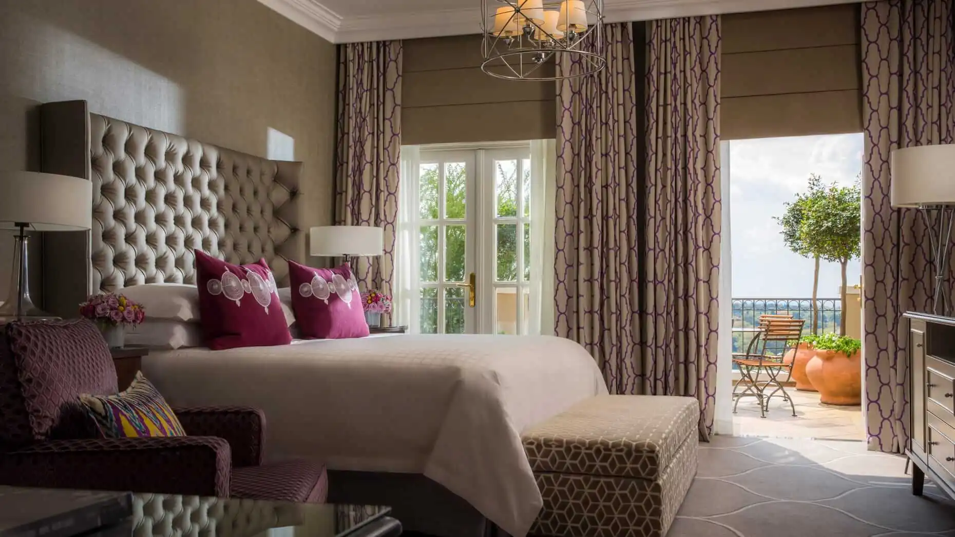 At Four Seasons The Westcliff, the grounds are laid out unconventionally; rooms are scattered throughout smaller, townhouse-like buildings built into a hillside. Beautiful courtyards with bubbling fountains dot the property and offer little secret gardens for exploring and relaxing. Most guests take rides on the golf cart shuttles up the hill and then enjoy leisurely walks through the gardens to get back down. The restaurant has a clever elevator up the hillside, which also helps to eliminate having to walk up the hill for dinner. This has the added advantage of giving the hotel a resort feel. It is easy to forget that you are an easy car ride to shopping and dining in Pankhurst, Braamfontein, and many other bustling Johannesburg neighborhoods.