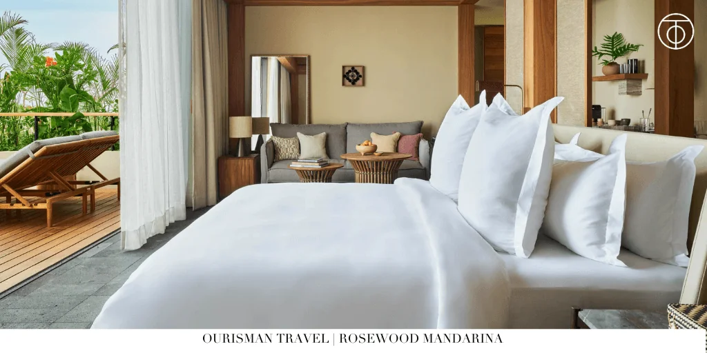 The resort shares access to the Canalan Beach Club, golf course, and equestrian center with One&Only Mandarina. Rosewood Elite Perks include daily breakfast, hotel credits, and flexible check-in/check-out, making it perfect for a memorable stay.
