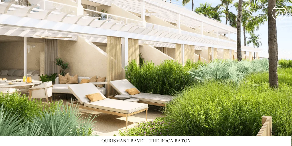 The Beach Club, on the beachside, is oceanfront with direct access to a private beach and three oceanfront pools, offering a coastal escape with a more relaxed, beach-centric atmosphere. It’s 1 to 1.5 miles from the Harborside Pool Club, requiring a 5-minute water taxi ride across Lake Boca Raton or a 5-7 minute shuttle, which adds a layer of planning but keeps access manageable for beach lovers wanting to visit the pool club.