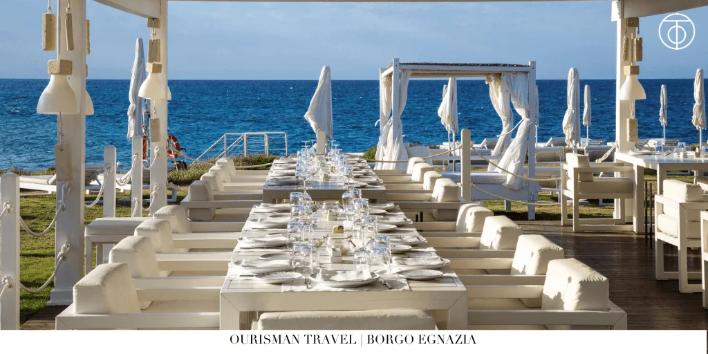 If you prefer the luxuries of staying at a hotel with on-site restaurants, activities, and poolside service, we highly recommend checking out Borgo Egnazia and San Domenico Palace, Taormina, a Four Seasons Hotel.